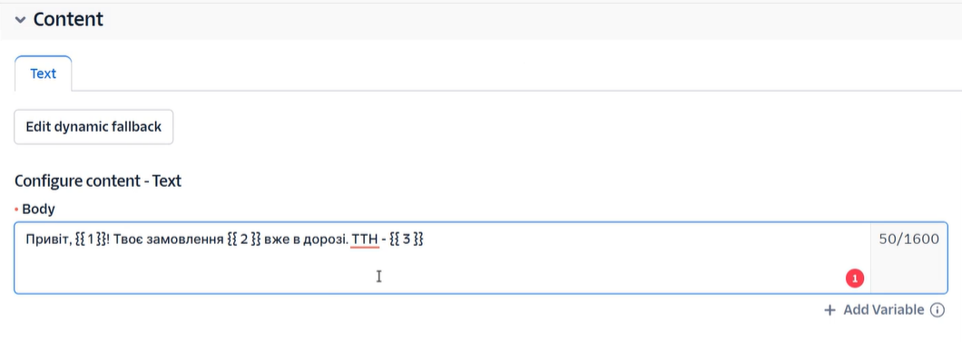 Do not overload the template with variables — if there are too many for a short text, simplify it.