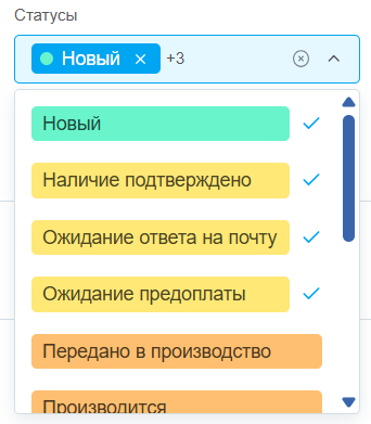 Фильтр по статусам заказов или карточек, в которых они фактически находятся сейчас: