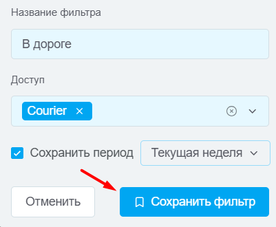 Нажмите кнопку «Сохранить фильтр» в развернутом фильтре и заполните поля: