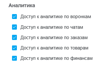 Доступ к каждому разделу аналитики можно ограничить по ролям:
