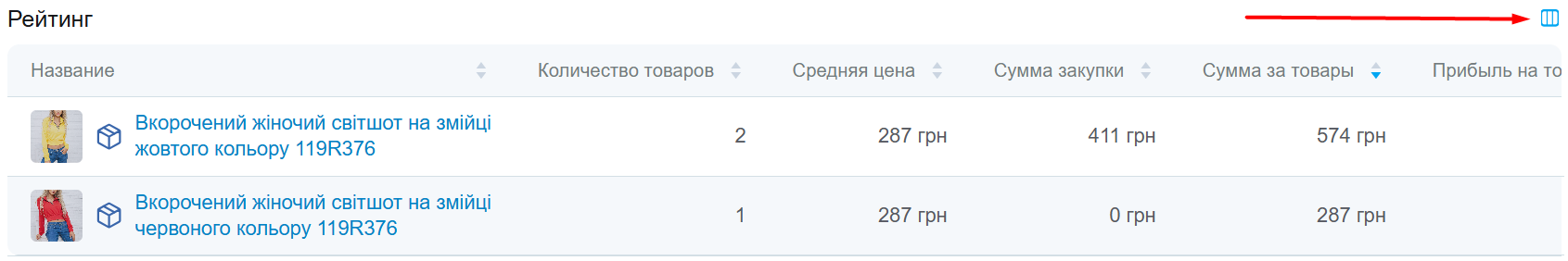 Нажав на один из показателей, вы можете отсортировать по нему аналитику. А по кнопке справа над таблицей активировать нужные колонки из доступных, выключить не нужные и изменить порядок перетаскивания: