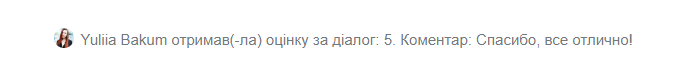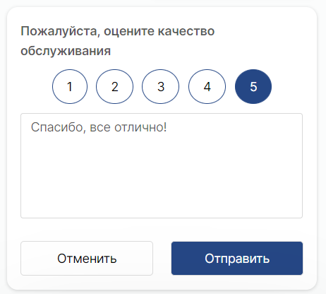 После этого по закрытию чата вашему клиенту будет предложено оценить обслуживание от 1 до 5 и оставить комментарий, при условии что: