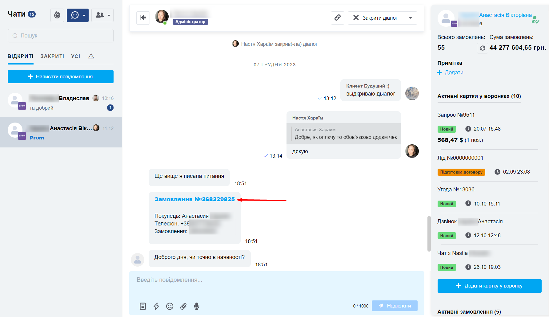 Поскольку Prom – это маркетплейс, чаты с него немного отличаются от обычных мессенджеров или Instagram. Но в целом общение с покупателем происходит, равно как и в обычных чатах.