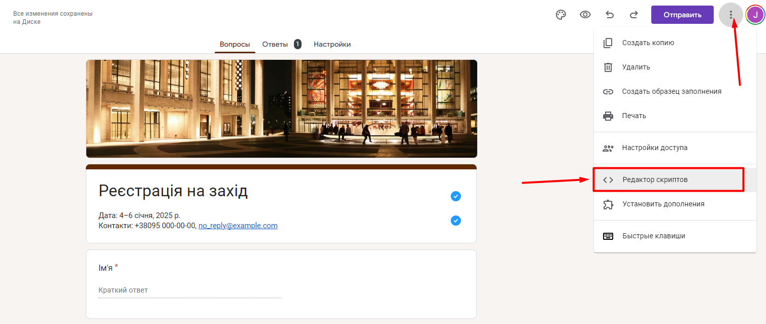 Перейдите в настройки нужной формы и выберите «Редактор скриптов»: