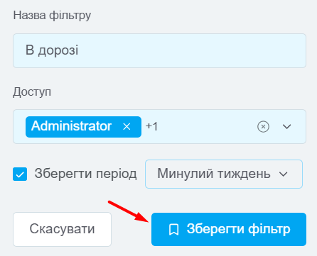 • Назва фільтру — назва буде відображатись в списку збережених фільтрів;
