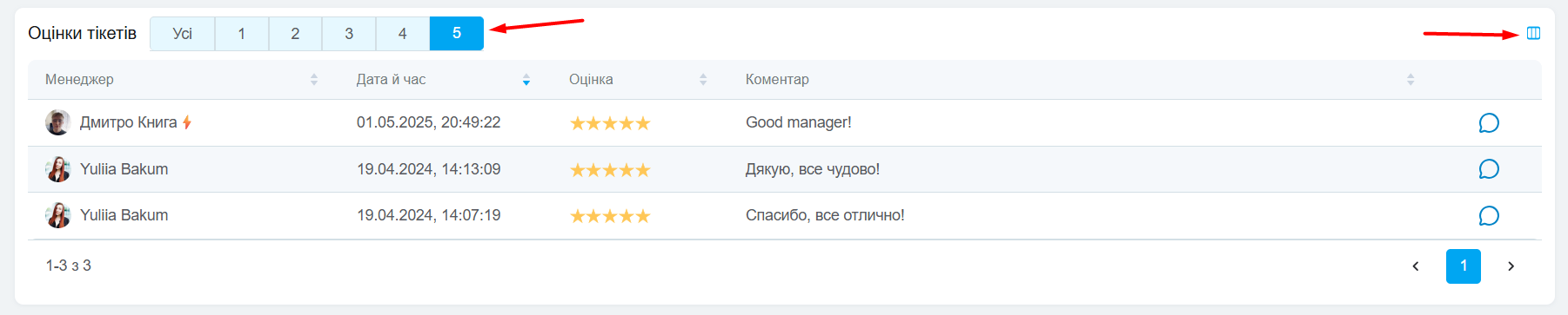 • Коментар клієнта доданий до оцінки;