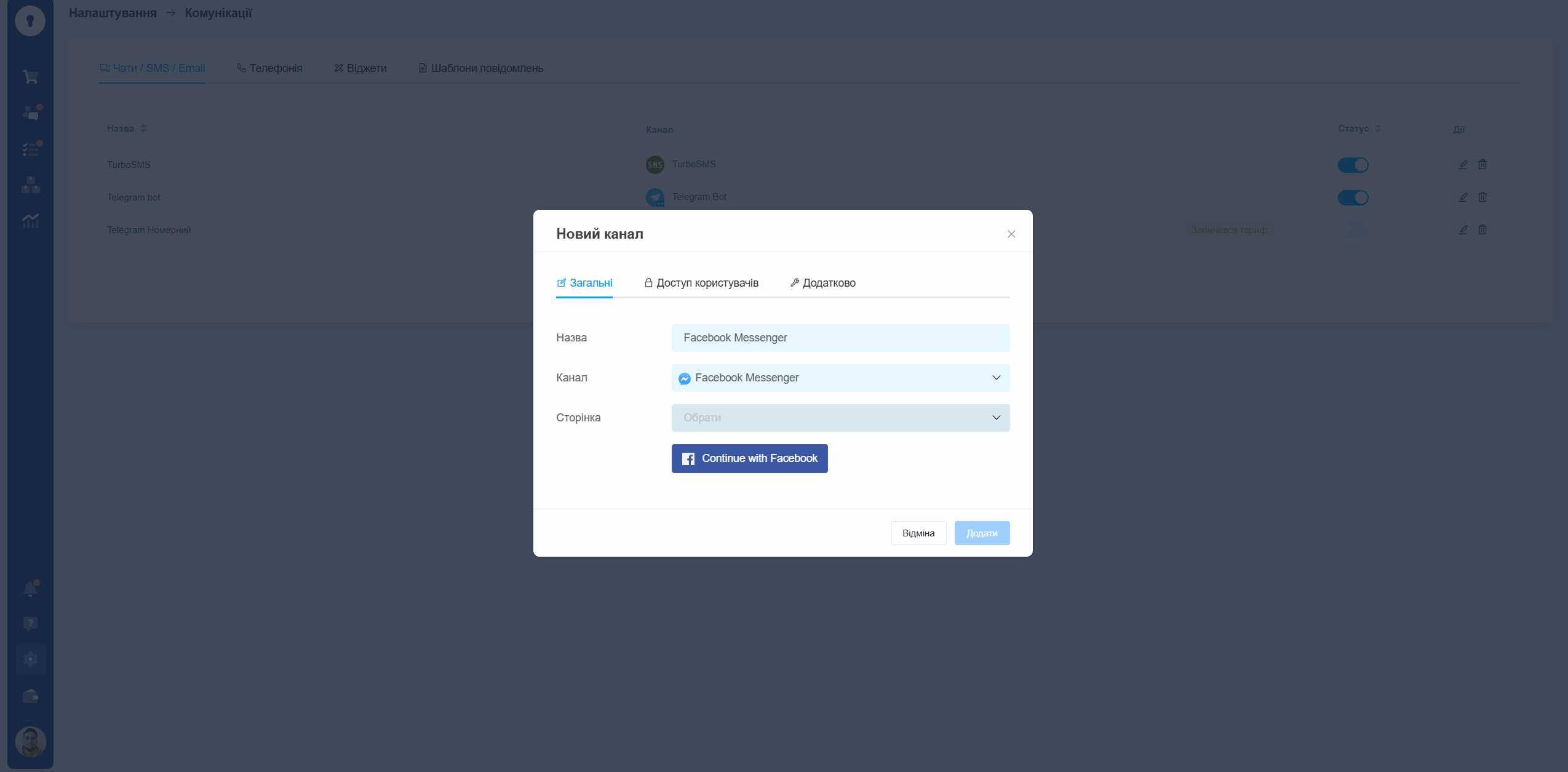 Важливо! Для підключення Facebook Messenger можна використовувати лише публічну сторінку Facebook.