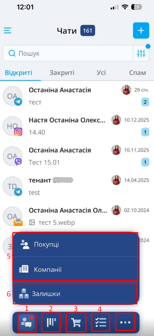 - Чати — для обробки звернень ваших клієнтів з різних месенджерів в єдиному вікні;