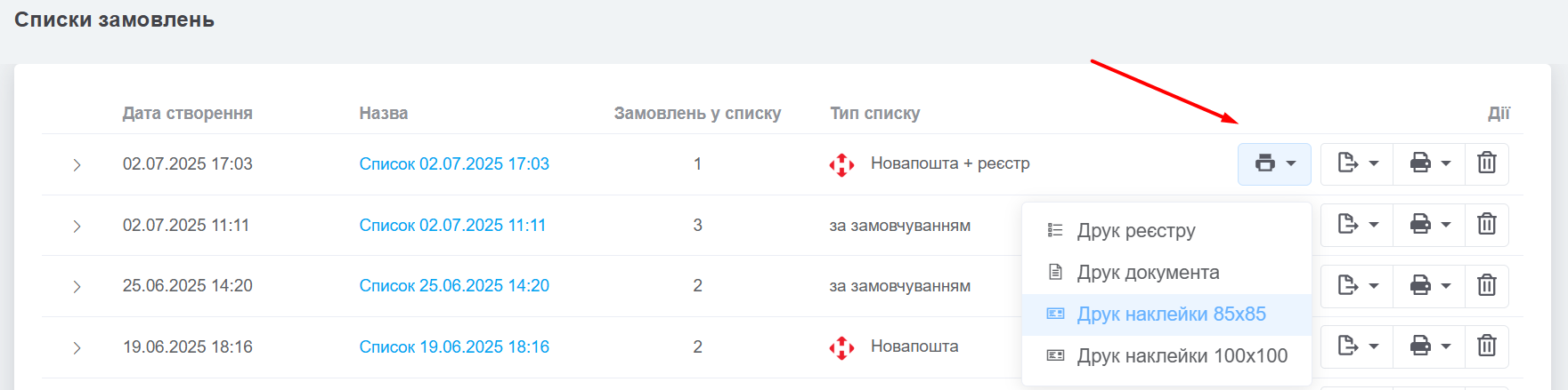 Відфільтрувавши замовлення, отриманий список можна зберегти та роздрукувати, експортувати у файл, створити реєстр для служби доставки, роздрукувати наліпки або переглядати в будь-який час.